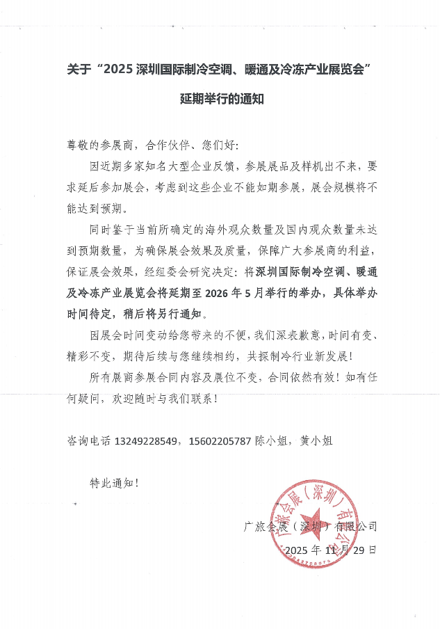 2025大湾区(深圳)国际制冷、空调、暖通及冷冻产业展定于2026年5月在深圳会展中心举行,数千种制冷行业的的新产品、新技术、新设备将亮相展会现场,展示最前沿的产品和行业趋势;