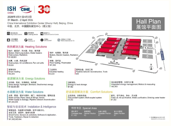 ISH China & CIHE - 中国国际供热通风空调、卫浴及舒适家居系统展览会(简称:中国供热展)将于2026年3月31日至4月2日在北京中国国际展览中心(顺义馆)举行,展会整体展览面积预计将达110,000平方米,将吸引逾1,300家优质企业参展,并迎来78,000名观众亲临现场参观。